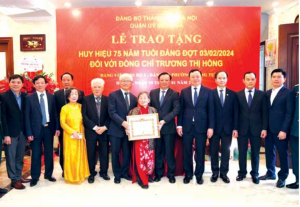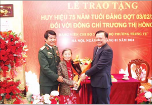 Sáng 19/01/2024, đồng chí Đinh Tiến Dũng, Ủy viên Bộ Chính trị, Bí thư Thành ủy, Trưởng đoàn đại biểu Quốc hội thành phố Hà Nội đã đến nhà riêng trao Huy hiệu 75 năm tuổi Đảng đợt 3/2 tặng đồng chí Trương Thị Hồng, đảng viên Chi bộ 3, Đảng bộ phường Trung tự, quận Đống Đa.