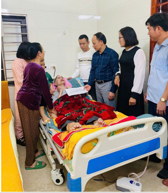 Em Võ Tá Hoài (38 tuổi), xã Lâm Trung Thủy, huyện Đức Thọ (cũ), bị tai nạn nặng, đã trải qua ba lần phẫu thuật não và hiện sống trong tình trạng thực vật.