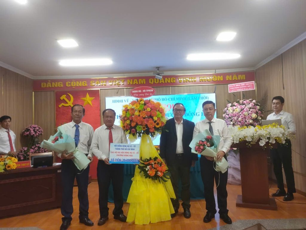 Đại hội vinh dự đón tiếp lãnh đạo HĐDH Vũ – Võ các cấp, gồm: Ông Vũ Minh Sang – Phó Chủ tịch HĐDH Vũ – Võ Việt Nam, Chủ tịch lâm thời HĐDH Vũ – Võ TP. Hồ Chí Minh; Ông Vũ Xuân Giá – Ủy viên Thường vụ HĐDH Vũ – Võ Việt Nam, Chủ tịch HĐDH Vũ – Võ tỉnh Đồng Nai; Ông Vũ Đức Khiển – Phó Chủ tịch Thường trực lâm thời HĐDH Vũ – Võ TP. Hồ Chí Minh; Ông Võ Văn Lãnh – Phó Chủ tịch lâm thời HĐDH Vũ – Võ TP. Hồ Chí Minh; Ông Võ Văn Giàu – Phó chủ tịch lâm thời HĐDH Vũ – Võ Tp. Hồ Chí Minh; Ông Võ Đặng Sĩ – Chủ tịch HĐDH Vũ – Võ phường Tân Đông Hiệp. Cùng các ông, bà là trưởng, phó các ban và thành viên Ban Chấp hành HĐDH Vũ – Võ TP. Hồ Chí Minh; đại diện HĐDH Vũ – Võ các phường lân cận như Dĩ An, Tân Đông Hiệp.