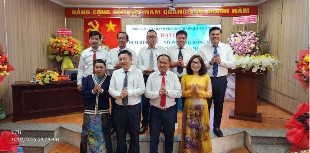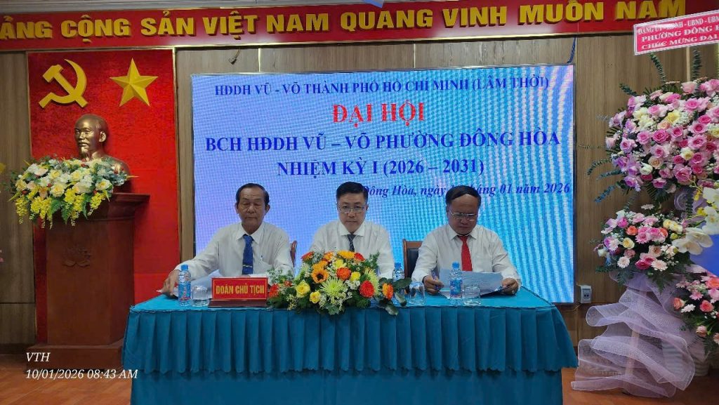 Sáng ngày 10/01/2026 (nhằm 22 tháng 11 năm Ất Tỵ), tại Hội trường UBND phường Đông Hòa, TP. Hồ Chí Minh, Đại hội HĐDH Vũ – Võ phường Đông Hòa lần thứ nhất, nhiệm kỳ 2026 – 2031 đã được tổ chức trọng thể trong không khí trang nghiêm, ấm áp nghĩa tình dòng tộc.