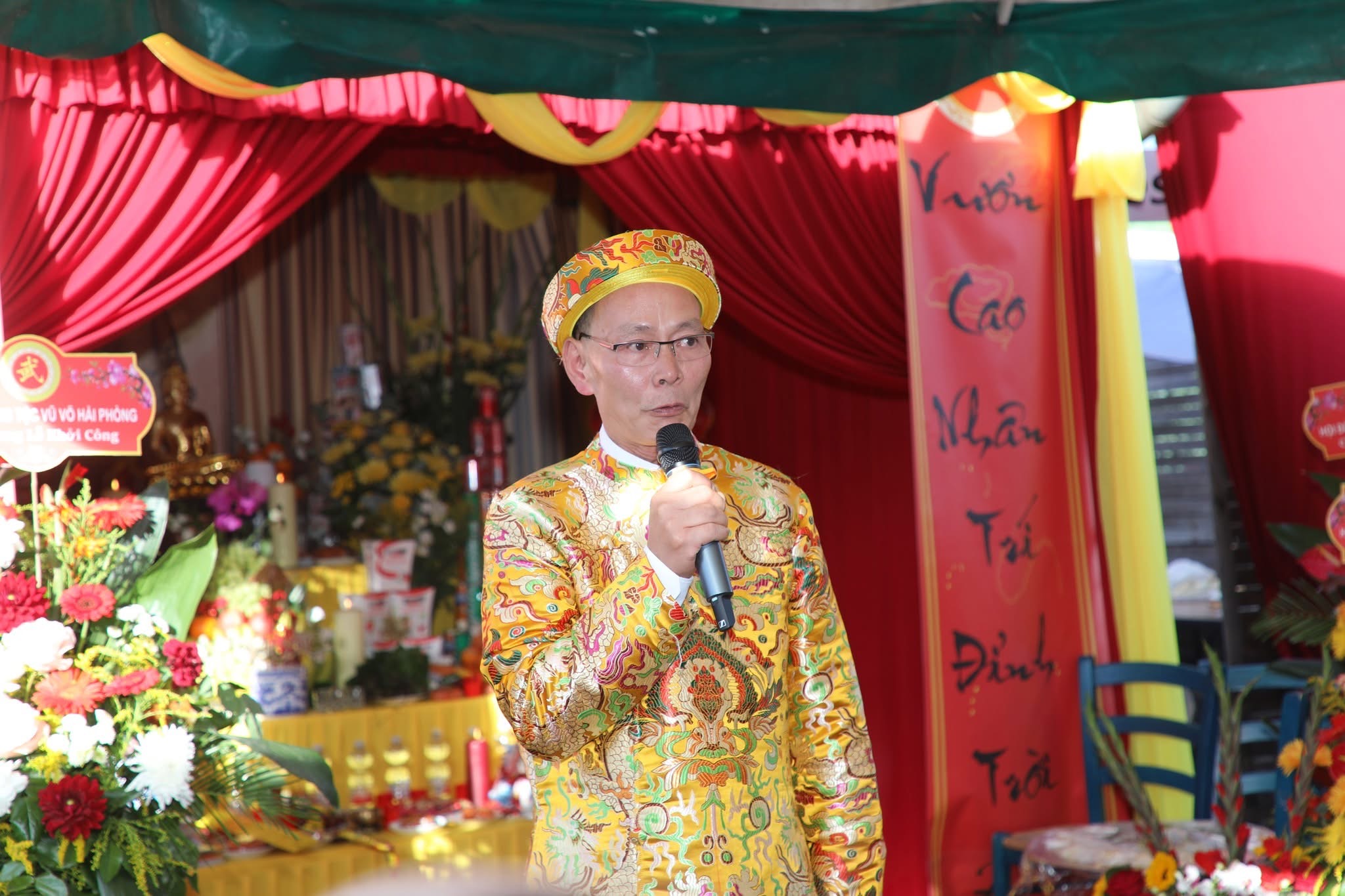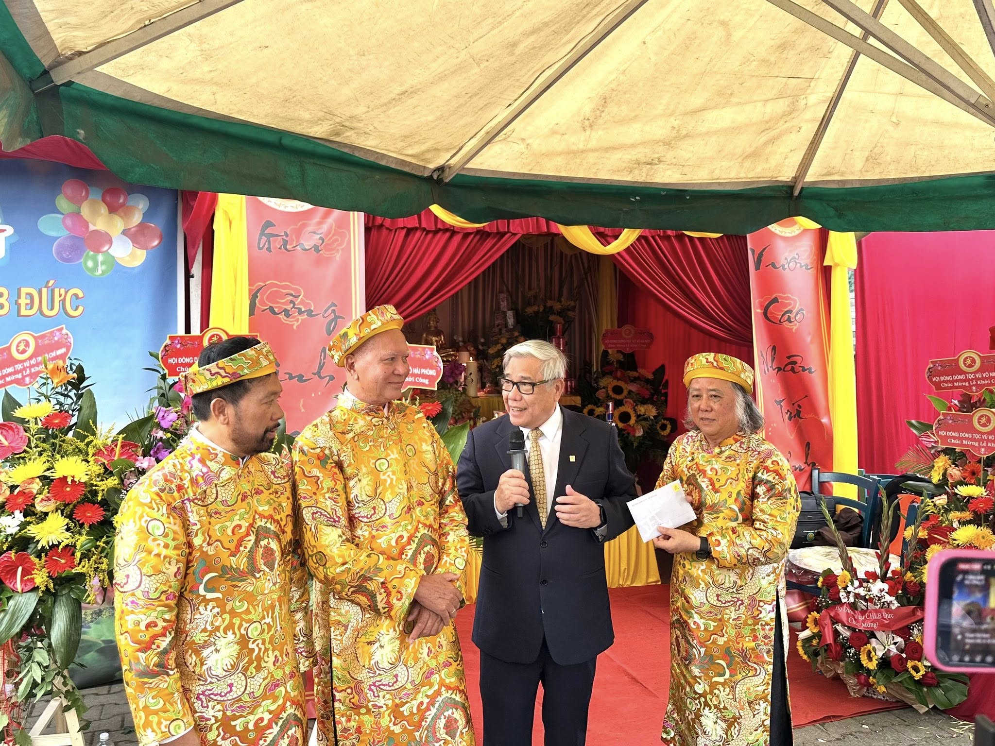 Kính thưa GS.TSKH.NGND Vũ Minh Giang – Chủ tịch HĐDH Vũ – Võ Việt Nam, Trưởng đoàn Dòng họ Vũ – Võ Việt Nam tham dự lễ khởi công hôm nay.