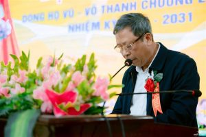 (Ông Trần Võ Trường – PCT Thường trực HĐ DH Vũ – Võ Thanh Chương báo cáo tổng kết nhiệm kỳ)