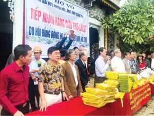 Đoàn công tác của HĐDH Vũ – Võ Việt Nam do Chủ tịch Vũ Minh Giang làm trưởng đoàn trao tặng quà cho bà con dòng họ ở miền Trung bị hậu quả bão lũ.