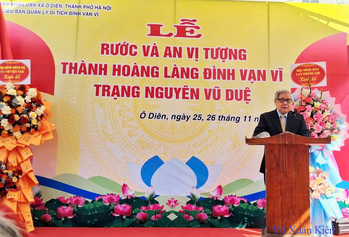 Trong hai ngày 25 và 26/11/2025, tại Đình làng Vạn Vĩ (xã Ô Diên, TP. Hà Nội), Ban khánh tiết cùng đông đảo nhân dân địa phương đã long trọng tổ chức Lễ rước và an vị tượng Trạng nguyên Vũ Duệ – vị Thành hoàng được tôn thờ tại đình. Sự kiện diễn ra trong không khí trang nghiêm, thể hiện lòng thành kính đối với tổ tiên và nỗ lực gìn giữ nét đẹp truyền thống của quê hương.