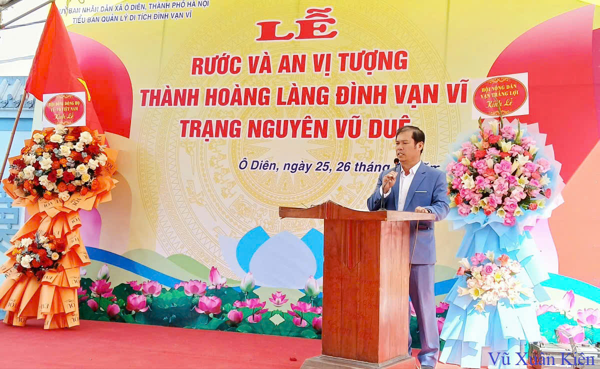 Nhân dịp hoàn thành việc an vị tượng, Tiểu ban quản lý di tích bày tỏ mong muốn UBND xã Ô Diên tiếp tục quan tâm công tác bảo quản tượng; Ban Quản lý Di tích Danh thắng Hà Nội hướng dẫn thủ tục chuyên môn sau nghi lễ; đồng thời đề nghị các cấp sớm xem xét hồ sơ công nhận Lễ hội làng Vạn Vĩ là di sản văn hóa phi vật thể cấp quốc gia.