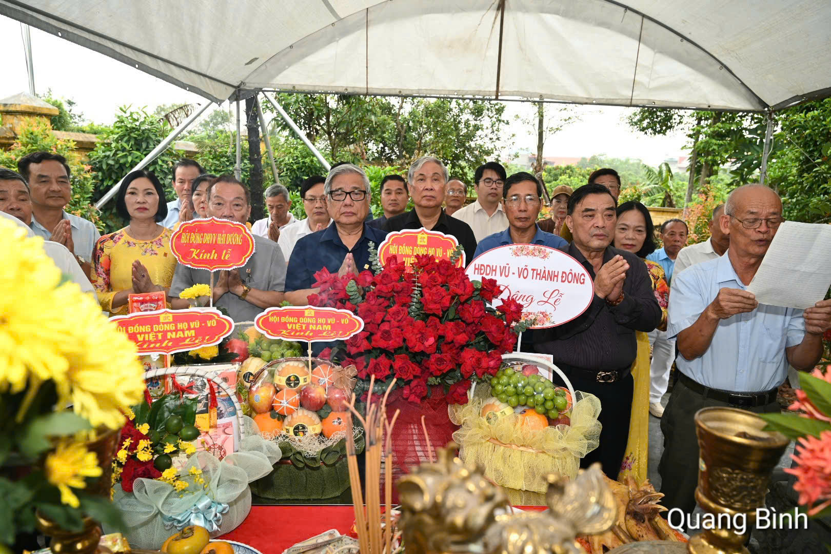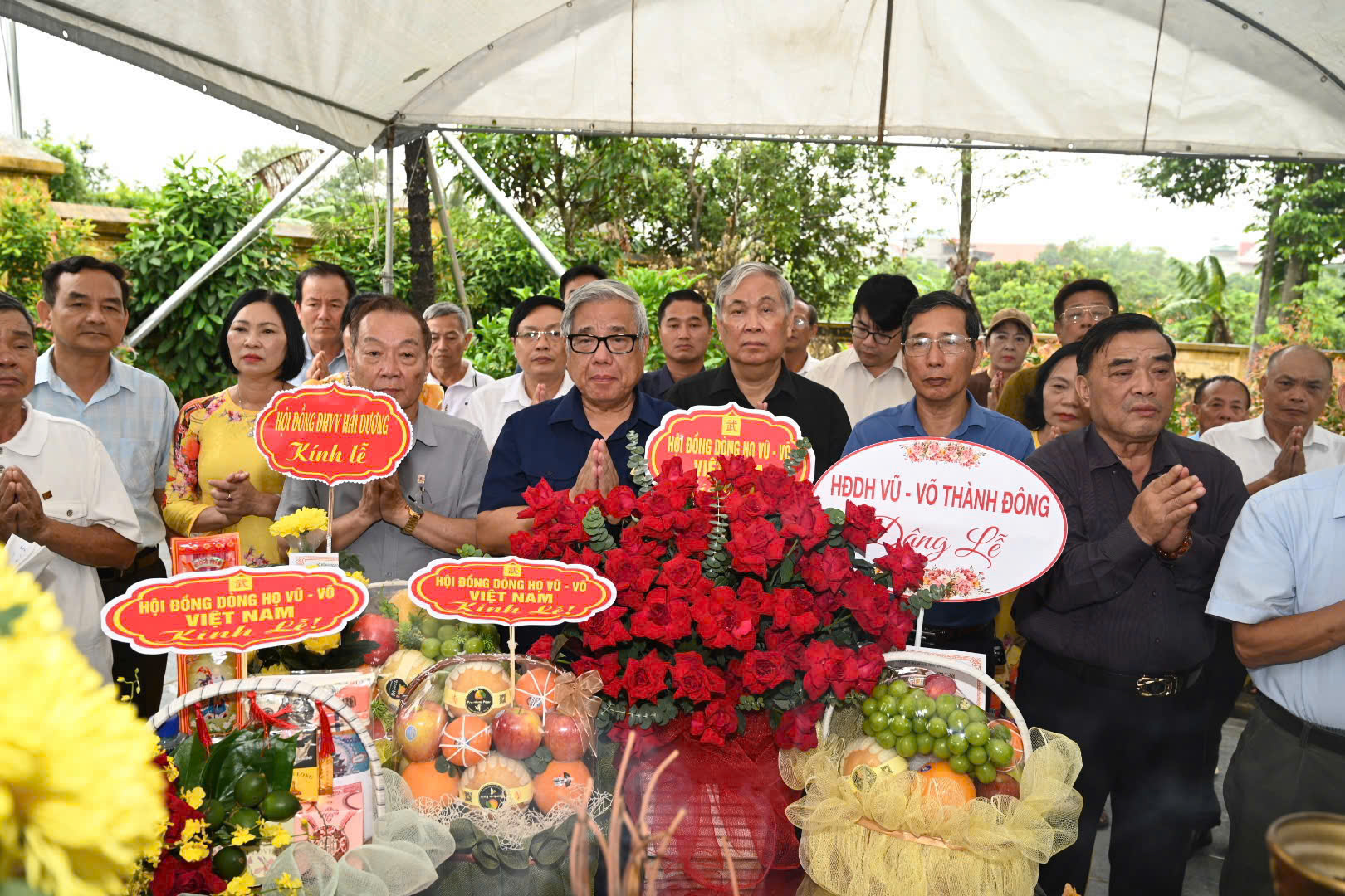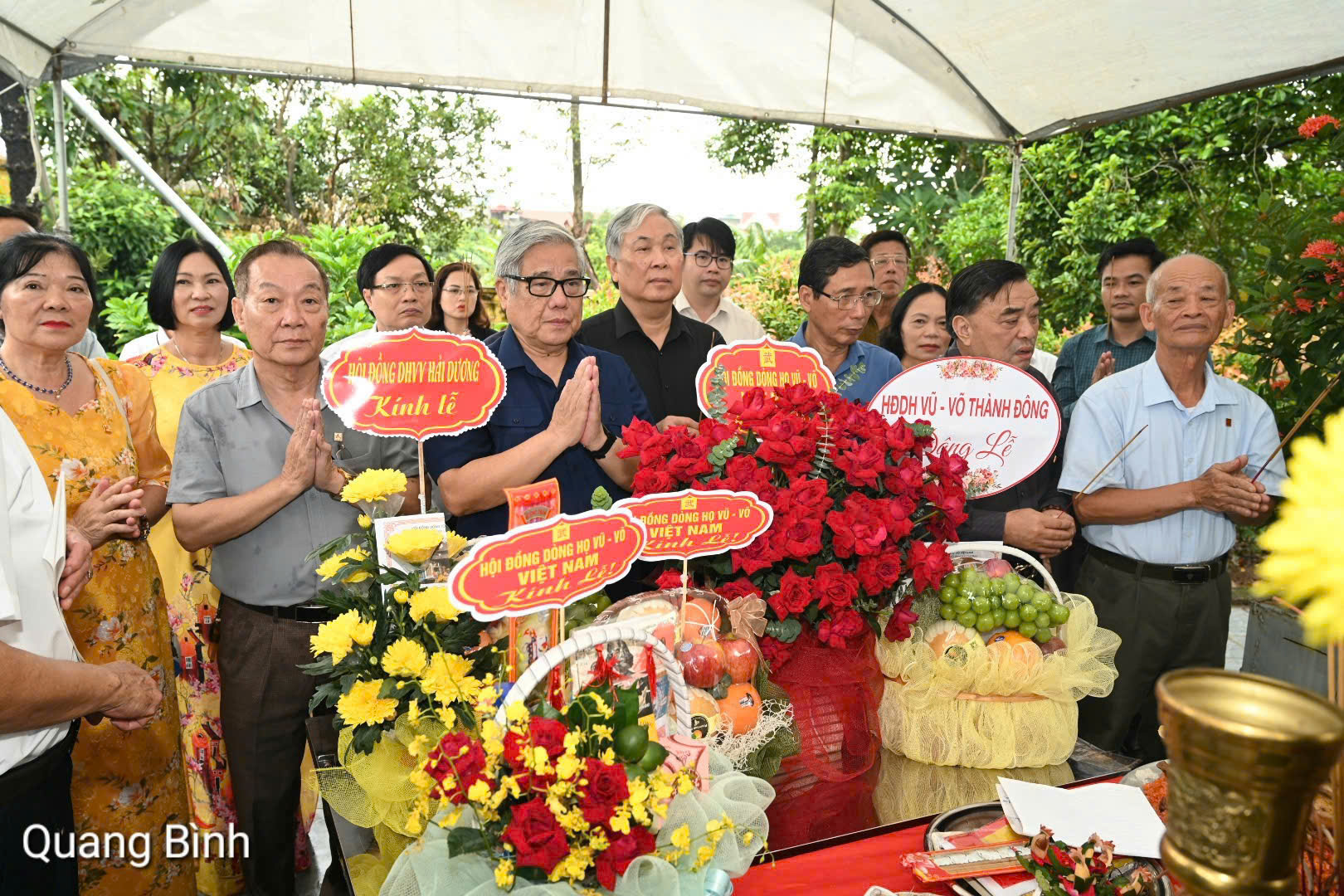 Tham dự buổi lễ có GS.TSKH.NGND Vũ Minh Giang – Chủ tịch HĐDH Vũ – Võ Việt Nam; ông Vũ Duy Bổng – Phó Chủ tịch HĐDH Vũ – Võ Việt Nam; ông Vũ Hữu Mai – Trưởng Ban Phát triển dòng họ; ông Vũ Chí Nghiêm – Chủ tịch HĐDH Vũ – Võ tỉnh Hải Dương, cùng nhiều thành viên trong các hội đồng dòng họ Vũ – Võ địa phương trên cả nước.