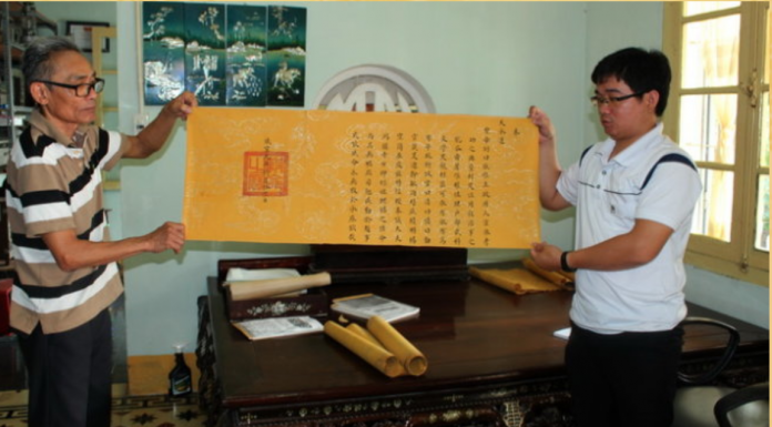Tại nhà thờ họ Võ Tá - 137 đường Ông Ích Khiêm, phường Thuận Thành, TP. Huế, đoàn nghiên cứu đã tiêp cận được nhiêu tư liệu quý, trong đó có bản săc phong thời Hàm Nghi liên quan đến nhân vật lịch sử...