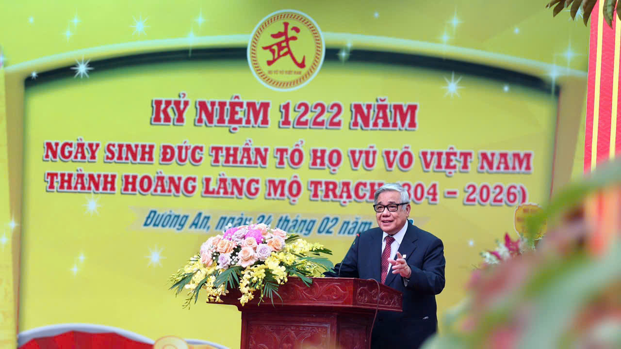 Phát biểu tại buổi lễ, ông Vũ Duy Nhu nhấn mạnh rằng Lễ hội truyền thống làng Mộ Trạch và Lễ kỷ niệm 1222 năm Ngày sinh Đức Thần Tổ Vũ – Võ Việt Nam là sự kiện văn hóa – tâm linh có ý nghĩa đặc biệt quan trọng đối với địa phương và đông đảo con cháu dòng họ Vũ – Võ trên cả nước.