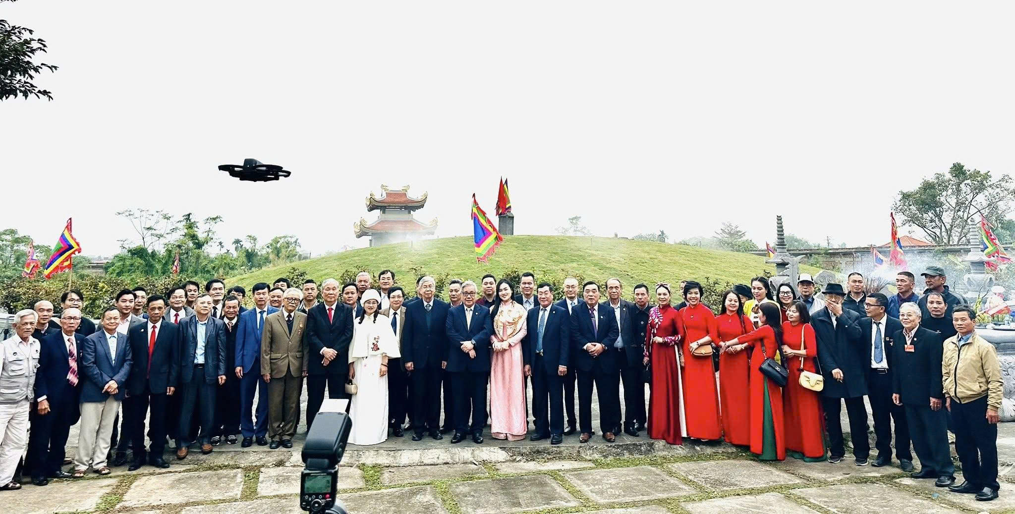 Con cháu dòng họ Vũ Võ chụp ảnh trước lăng mộ cụ Thượng tổ Vũ Tiên Oanh