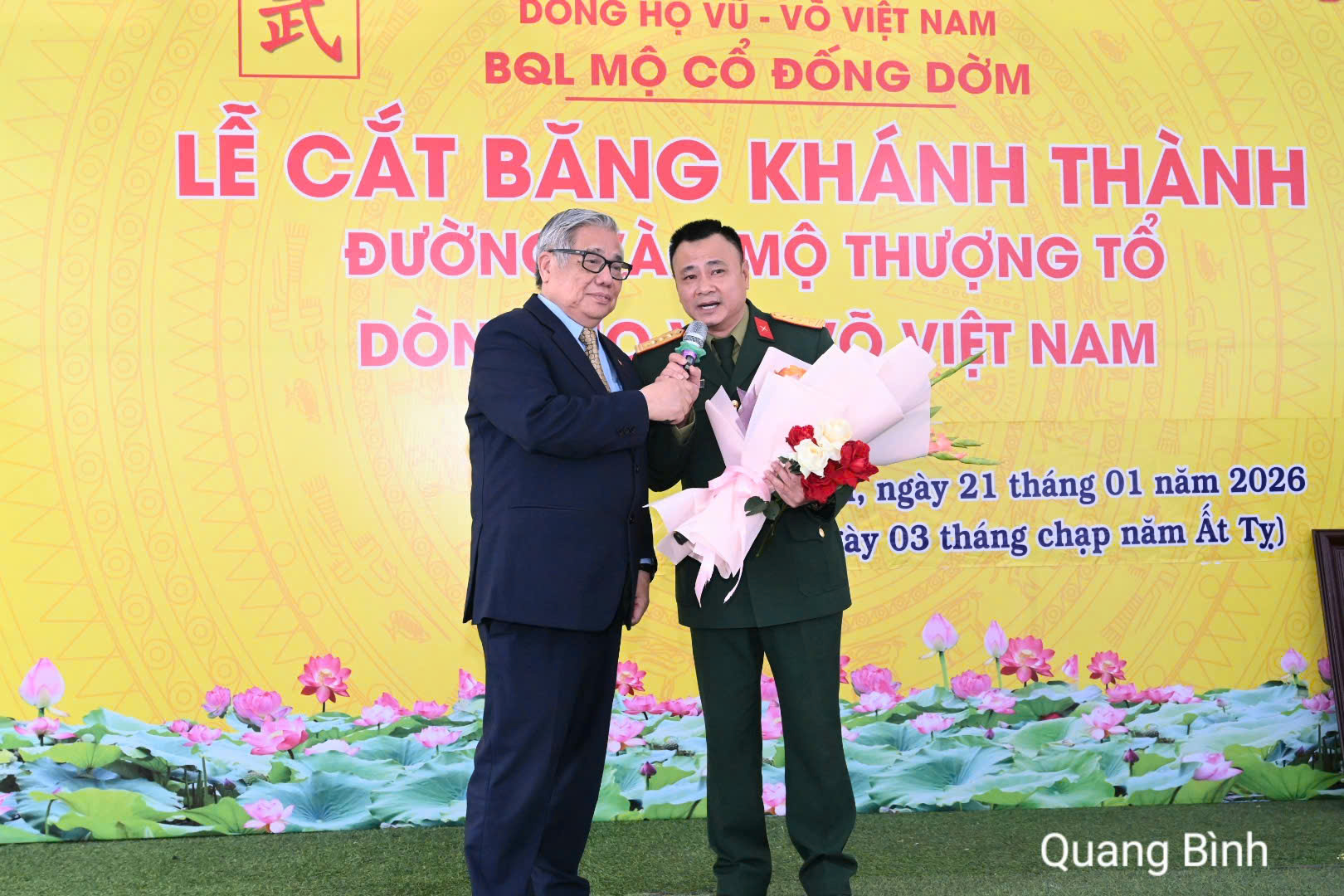 Việc hoàn thành con đường vào khu linh tích hôm nay không chỉ là ước nguyện bao đời của dòng họ, mà còn hòa chung với ước nguyện của dân tộc trong việc gìn giữ, tôn vinh cội nguồn và sự học. Ông trân trọng cảm ơn cái tâm trong sáng, bền bỉ của những người con dòng họ Vũ – Võ đã lặng thầm góp sức dựng xây, đồng thời cảm ơn sự quan tâm, tạo điều kiện của chính quyền và nhân dân địa phương để khu linh tích Đống Dờm ngày càng khang trang, xứng đáng là miền thiêng của tri ân và khai mở.
