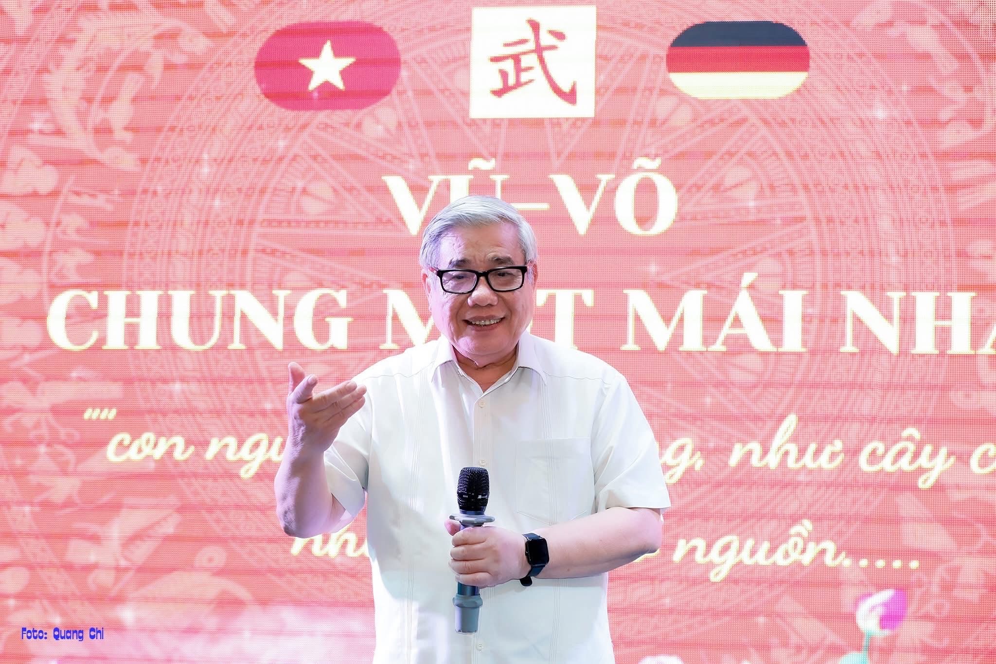 GS.TSKH.NGND Vũ Minh Giang – Chủ tịch HĐDH Vũ – Võ Việt Nam phát biểu tại sự kiện Vũ Võ Chung Một Mái Nhà tại Berlin Đức